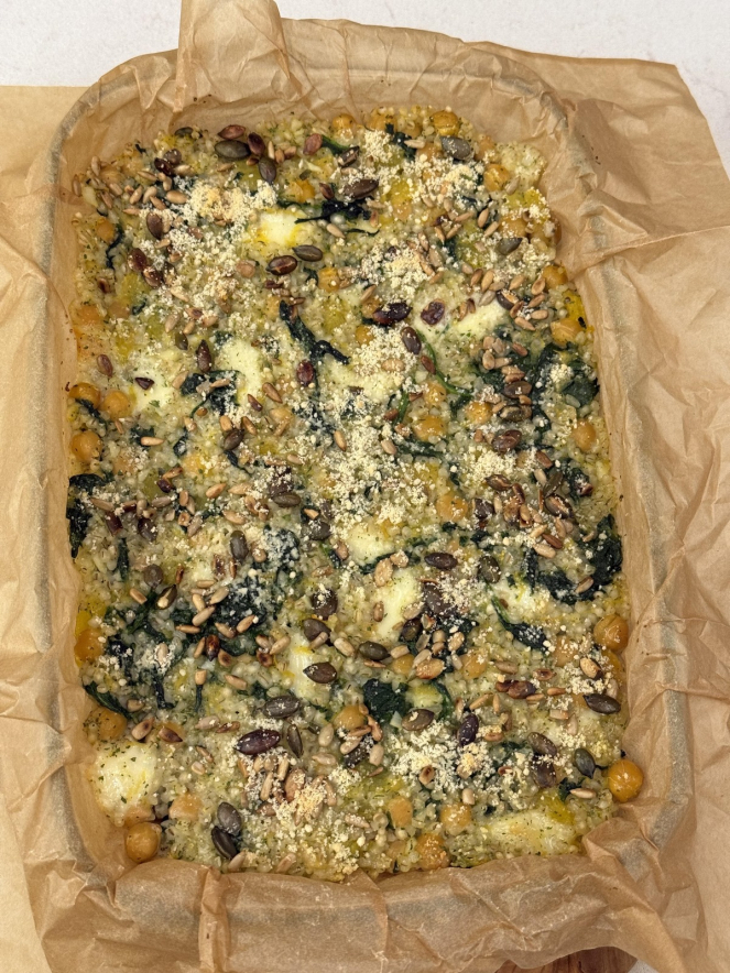 Гречка… ой, нет, перловка с тыквой и шпинатом в духовке