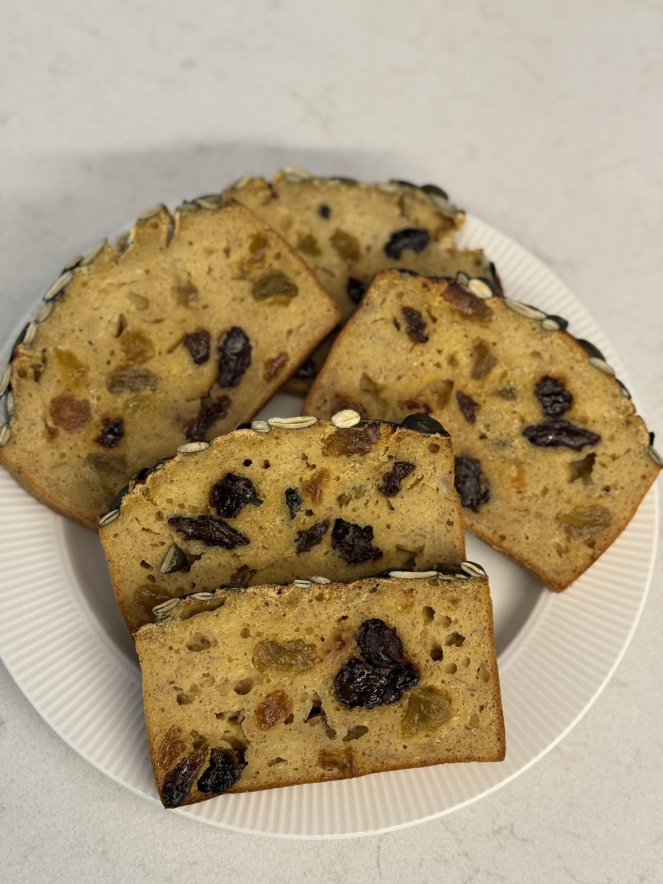 Печём ароматный банановый хлеб с изюмом и тыквенными семечками — простой, солнечный и очень домашний Ингредиенты: бананы спелые – 3 шт. яйца – 2 шт. йогурт – 3 ст.л. (или немного сливок) рикотта – 2 ст.л. кукурузная мука – 200 г разрыхлитель – 1 ч.л. финиковый сироп (или сахар) – 2–3 ст.л. изюм светлый и тёмный – по горсти семечки тыквенные – горсть Готовим: 1. Разминаем бананы вилкой в пюре. 2. Добавляем яйца, йогурт, рикотту и сироп — перемешиваем. 3. Всыпаем муку с разрыхлителем, замешиваем тесто. 4. Подмешиваем изюм. 5. Перекладываем в форму, сверху — семечки. 6. Печём при 180 °C около 40–50 мин, до румяной корочки и божественного аромата. 7. Остужаем, нарезаем и устраиваем себе уютное чайное застолье. Текст и фото: @hudejkaa в Инстаграме11-12-2025