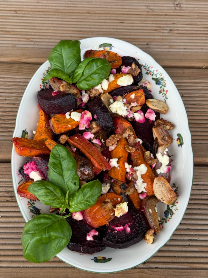 Запечённые овощи со свёклой, морковью, фетой и травами